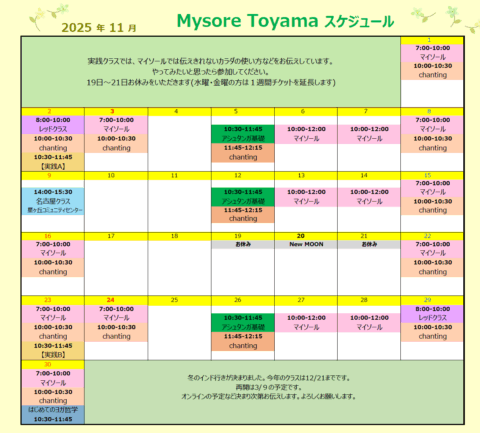 11月のスケジュールです。